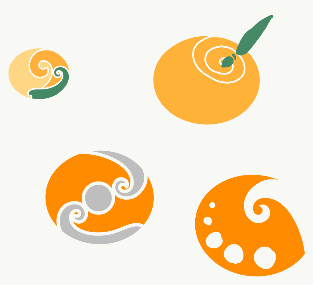 After talking with my teacher, I decided on the drawn Orange with the swirl and the brush as it’s stem. As it easily got along both terms and felt made by hand.