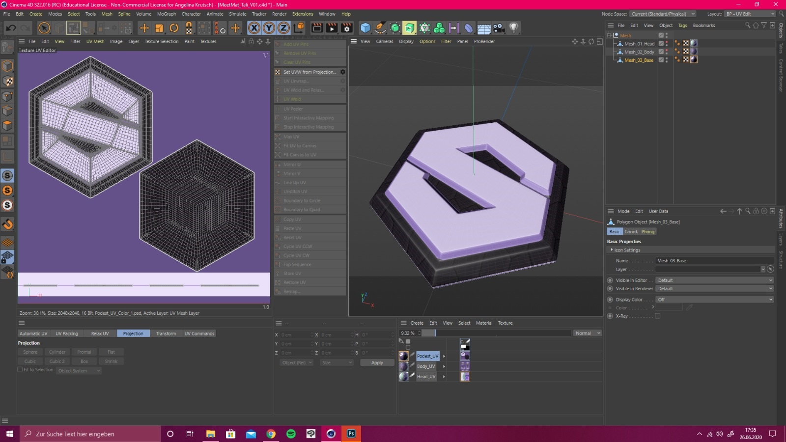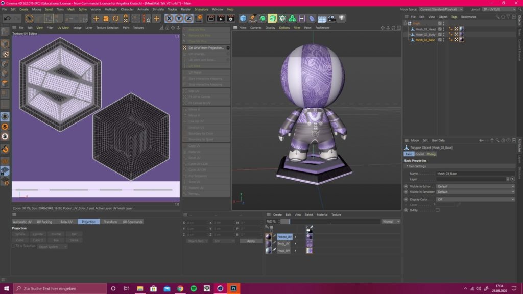 For 3D-Texturing we were assigned to create a concept for a Meetmat, which we’d then unwrap in C4D and create the texture for.